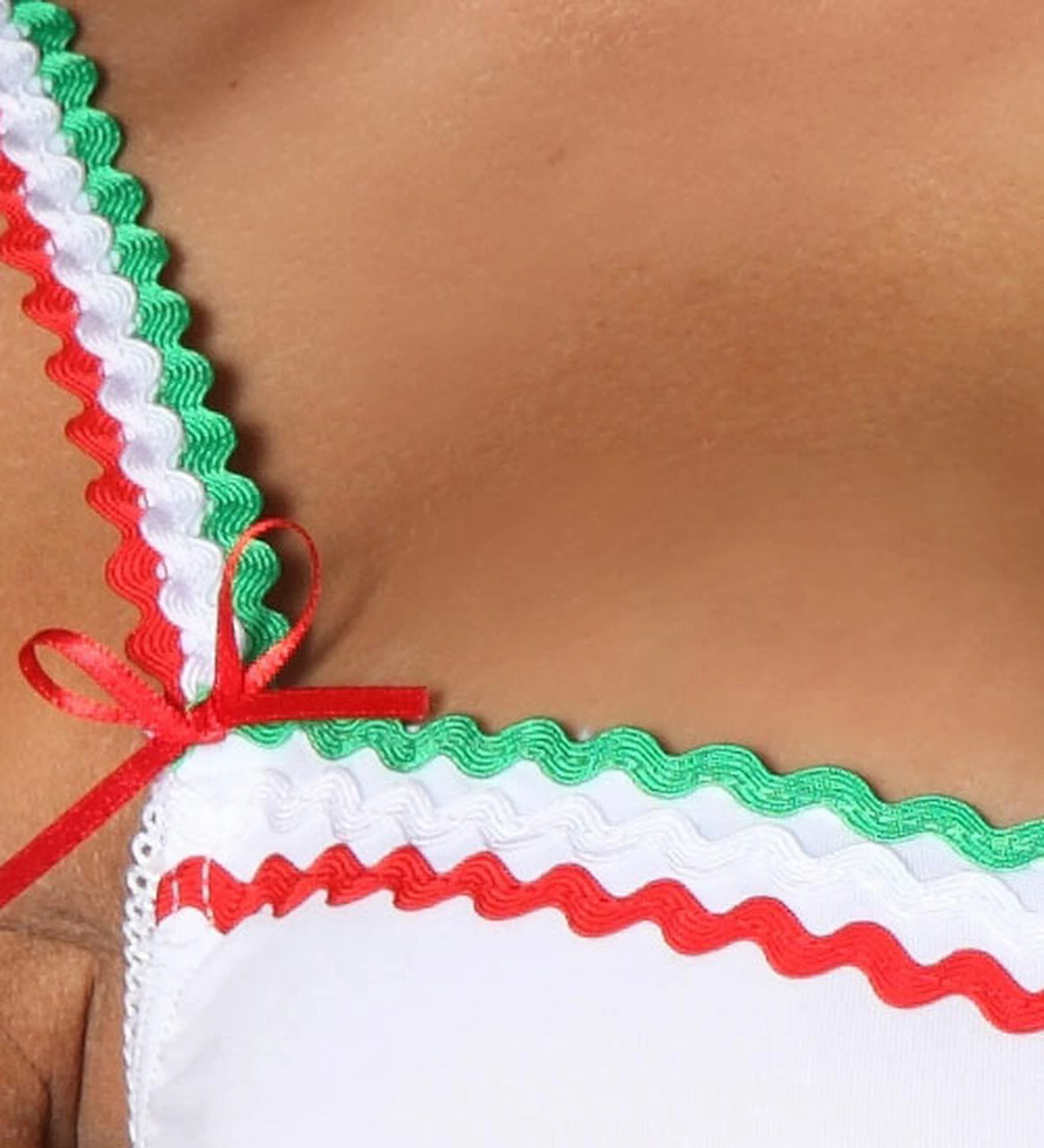 This set features a traditional white bra trimmed with red and green in celebration of a little Latin flavor. Add in the white thong panties with that same red and green style and you’re definitely going to be in business. This set has everything you need to enjoy a little Cinco de Mayo fun at home, but you can definitely use it all year round if you’re so inclined because it’s simple to wear and can even be worn under your clothes all day if you’re feeling a little naughty.